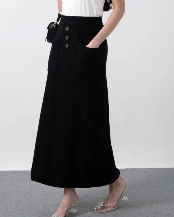 Cattana Long A-Line Knit Skirt