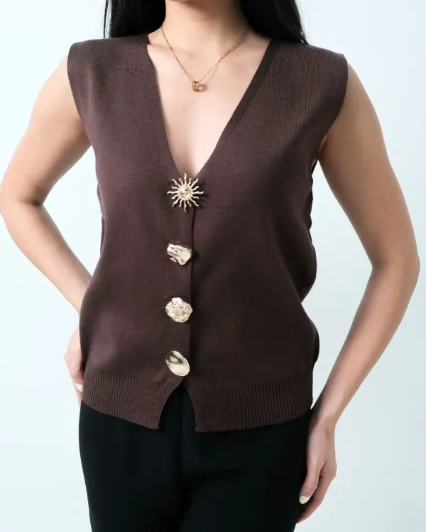 Aizha Embossed Buttons Vest
