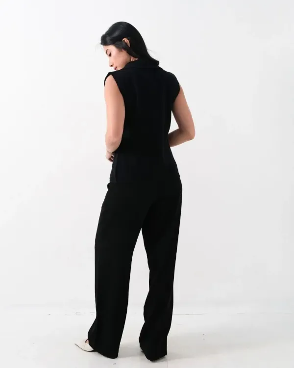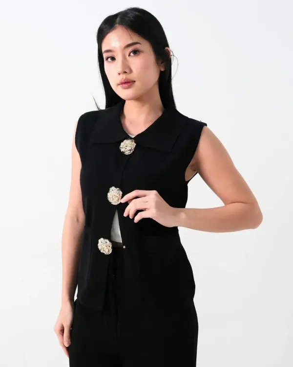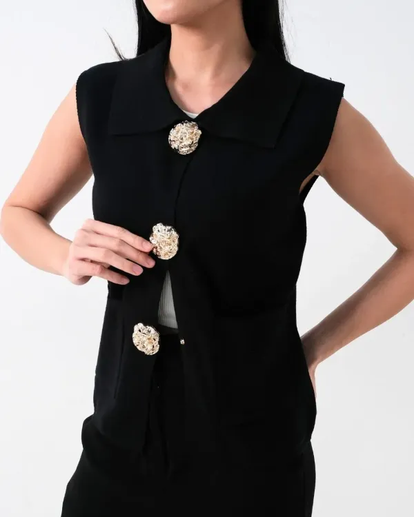 Aliana Embossed Buttons Sleeveless Collar (Special Black)