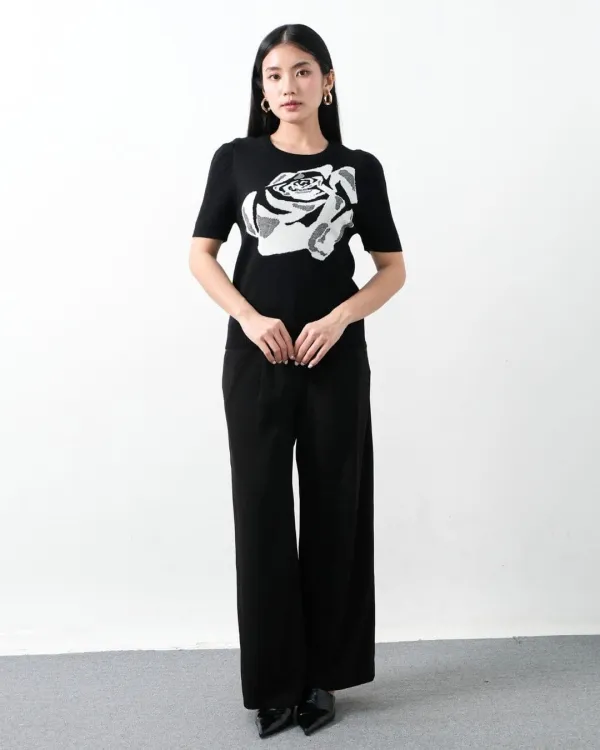 Katy Short Sleeve O Neck Pattern Top