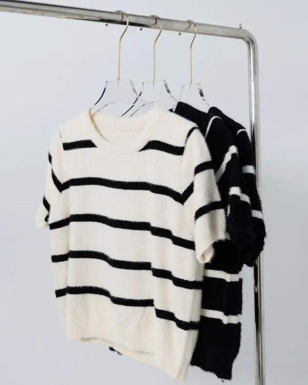 Riisa Short Sleeve Stripe Fuzzy Top