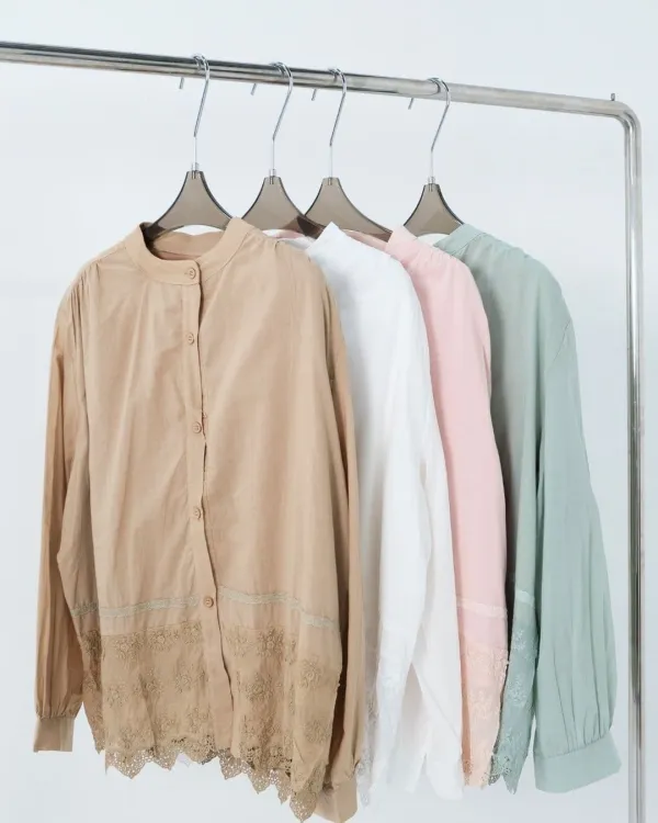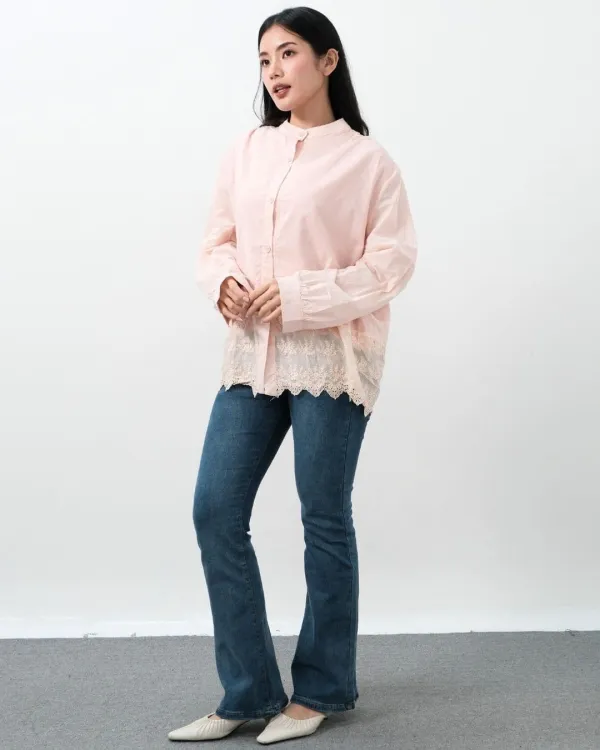 Cicana Cotton Lace O Neck Shirt