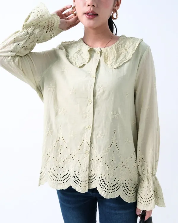 Evaleen Cotton Lace Collar Shirt