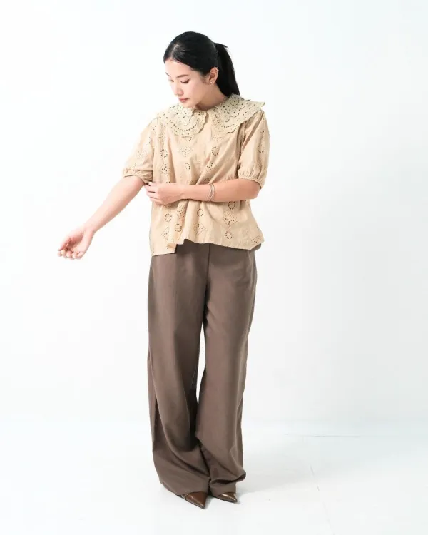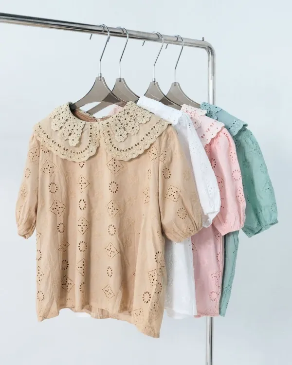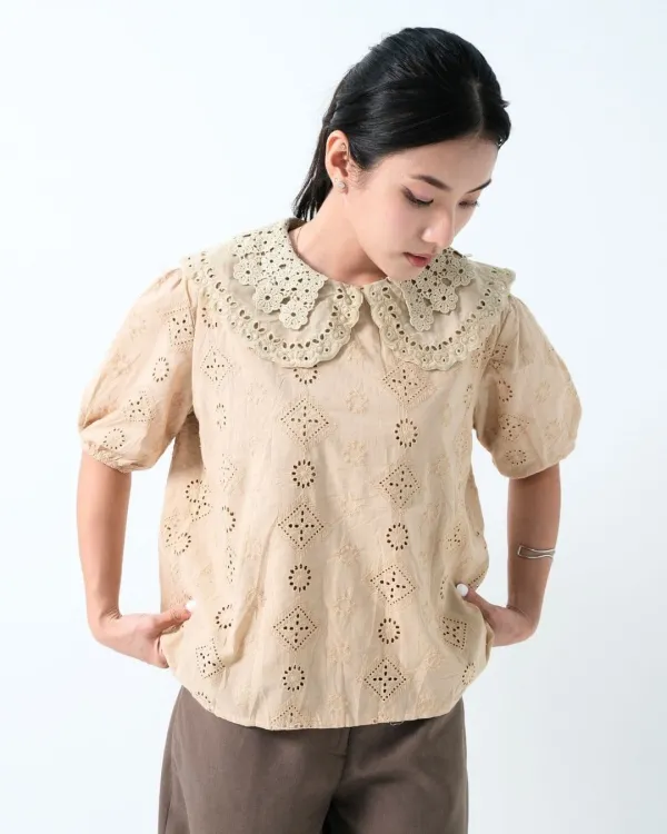 Leonnie Short Sleeve Cotton Lace Collar Top