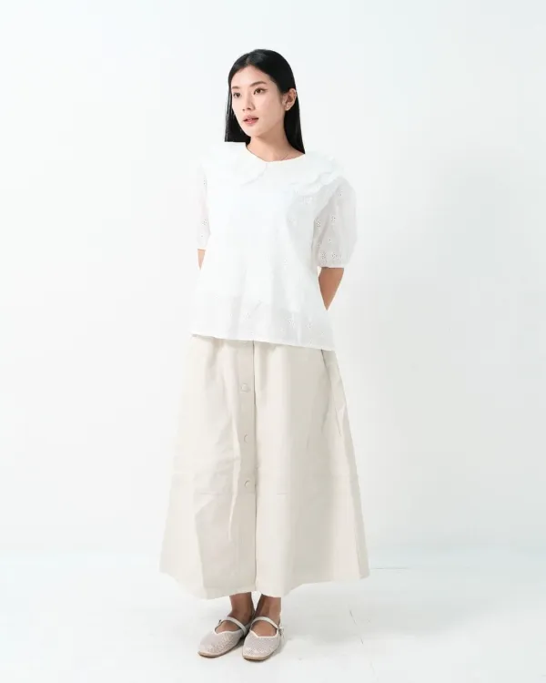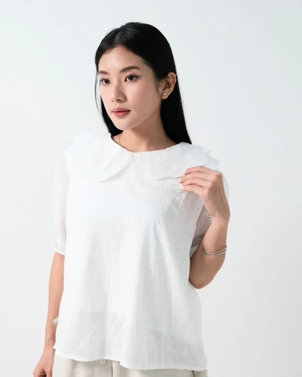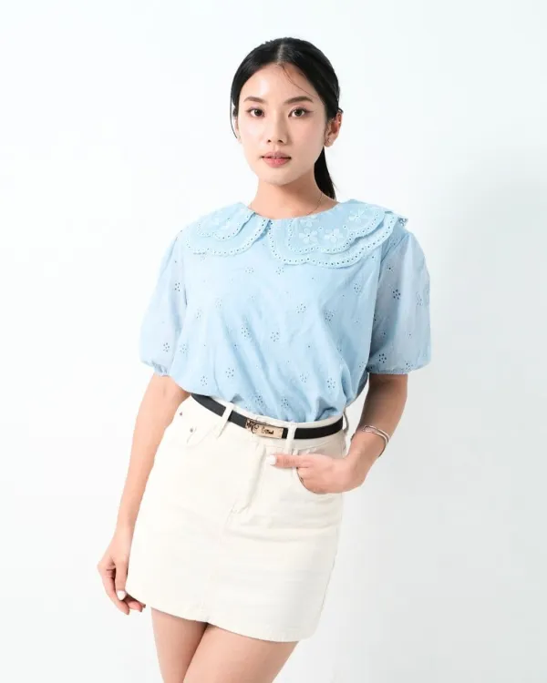 Oliviera Short Sleeve Cotton Lace Collar Top