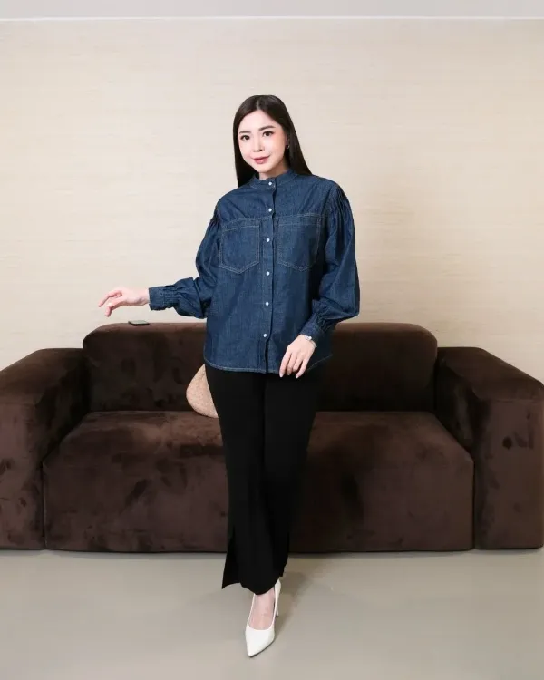 Cavia Round Neck Denim Shirt