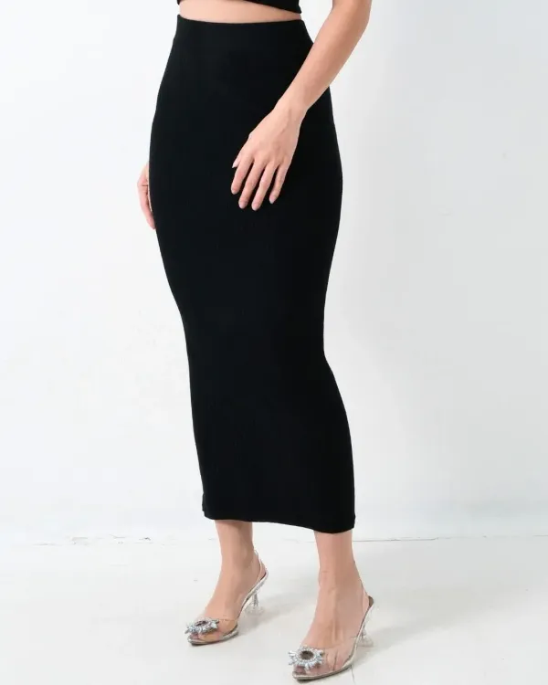 Aretha Long Knit Skirt (Special Black)