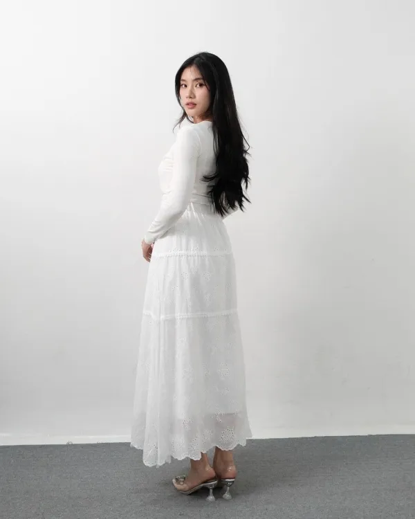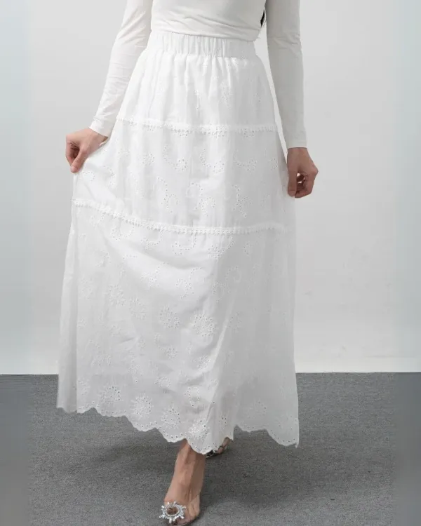 Tatiana Long Cottons Lace Skirt (Special White)