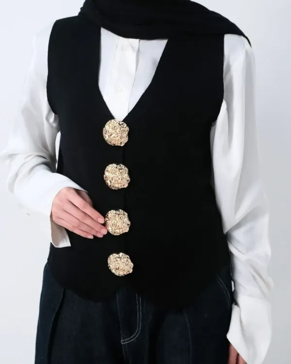 Claira Embossed Buttons Vest (Special Black)