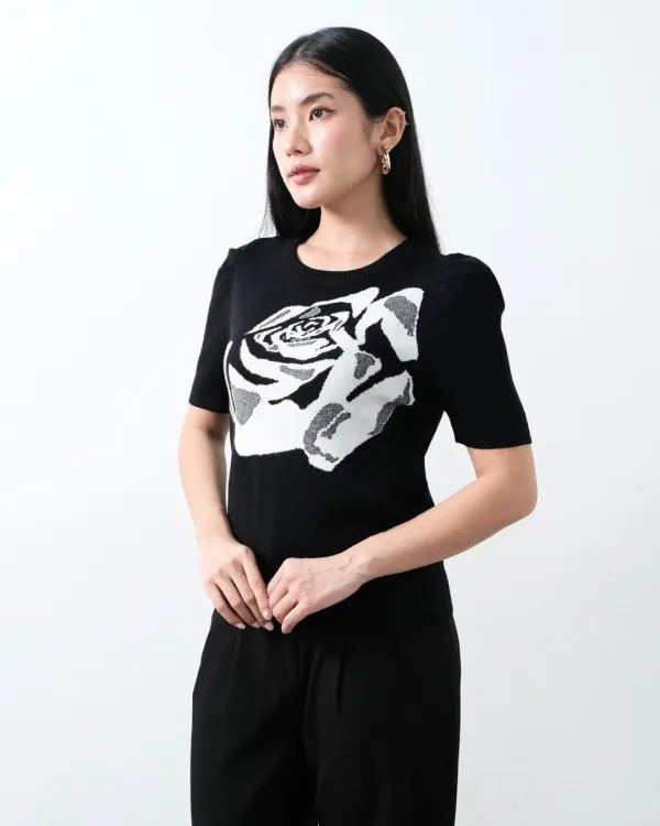 Katy Short Sleeve O Neck Pattern Top
