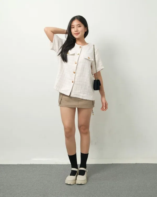 Mireca Short Sleeve O Neck Tweed