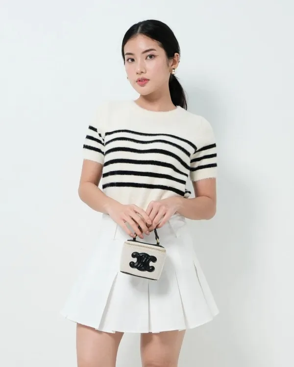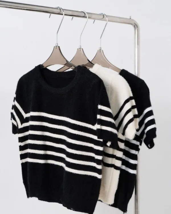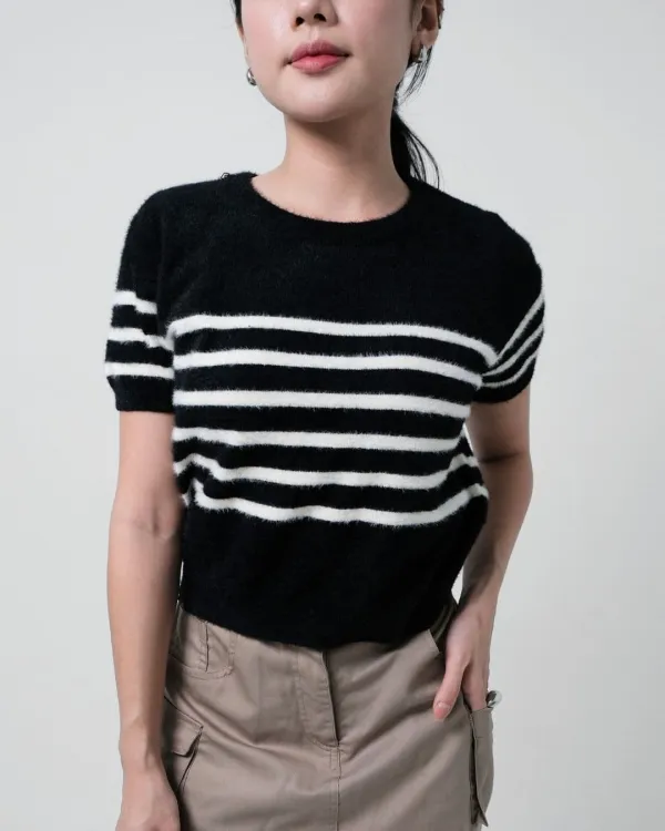 Navisha Short Sleeve Stripe Fuzzy Top