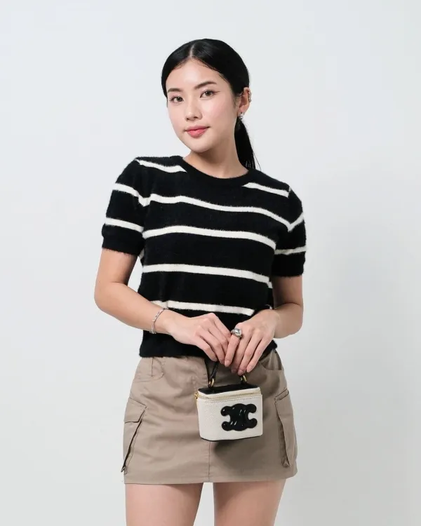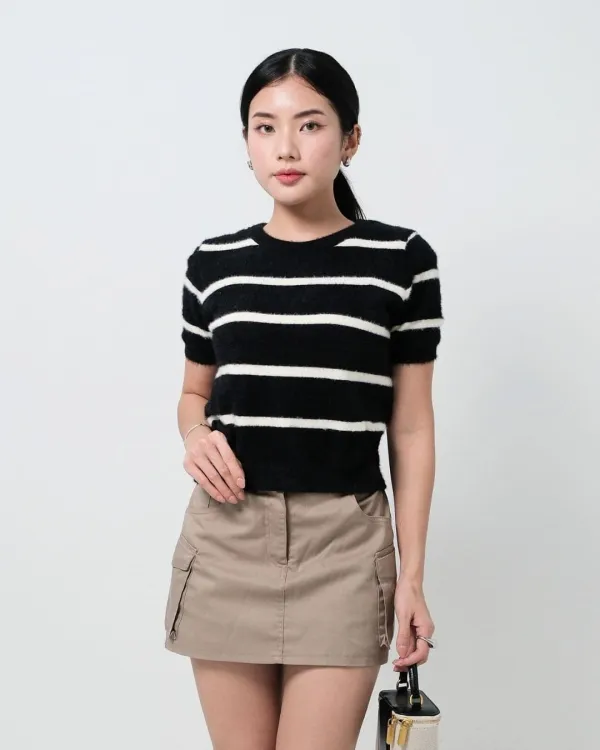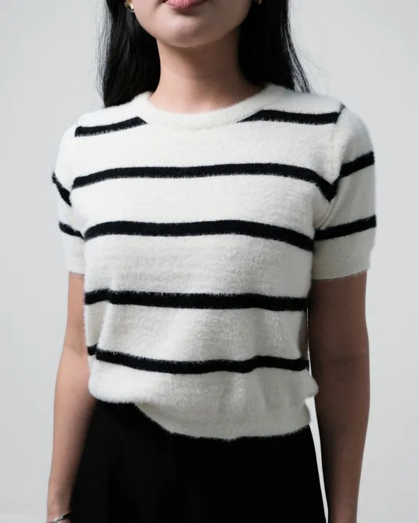 Riisa Short Sleeve Stripe Fuzzy Top