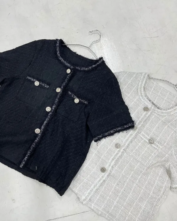 Vasya Short Sleeve O Neck Tweed