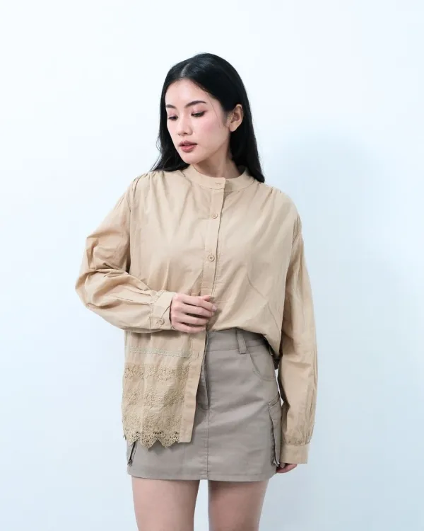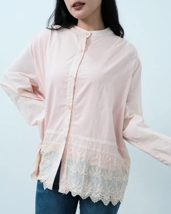 Cicana Cotton Lace O Neck Shirt