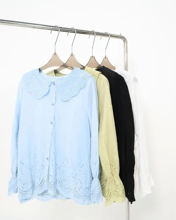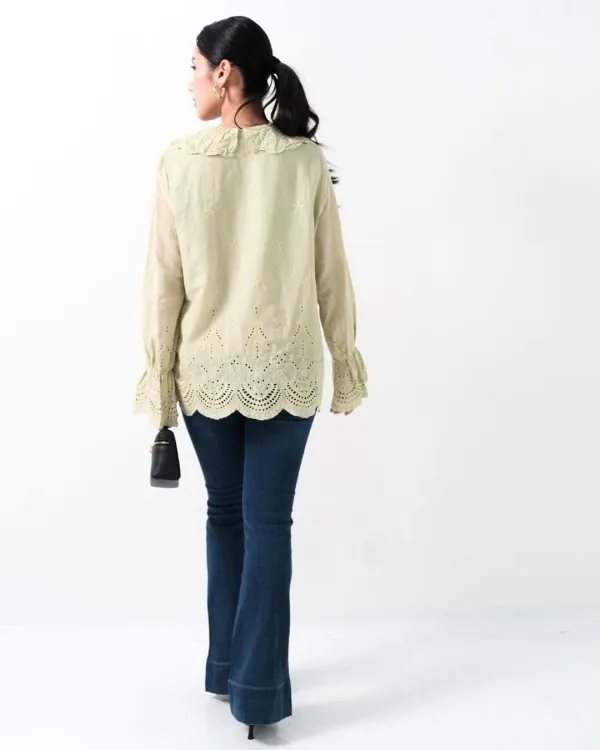 Evaleen Cotton Lace Collar Shirt