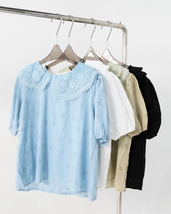 Oliviera Short Sleeve Cotton Lace Collar Top