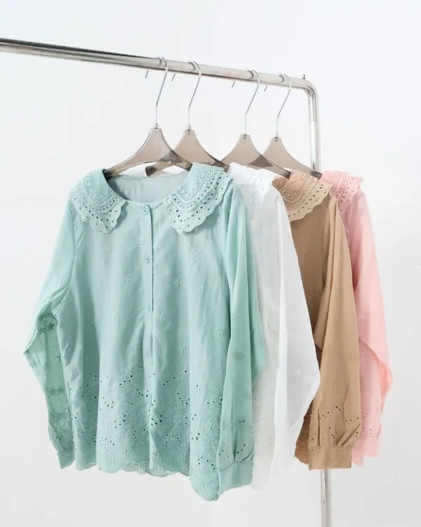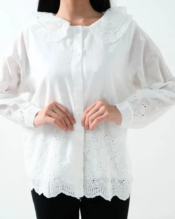 Velly Cotton Lace Collar Shirt