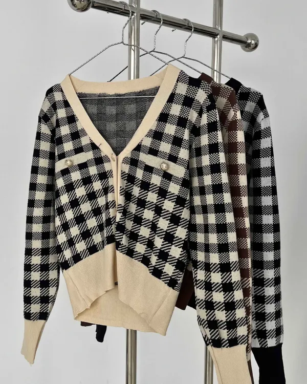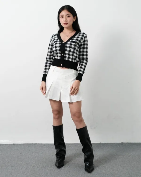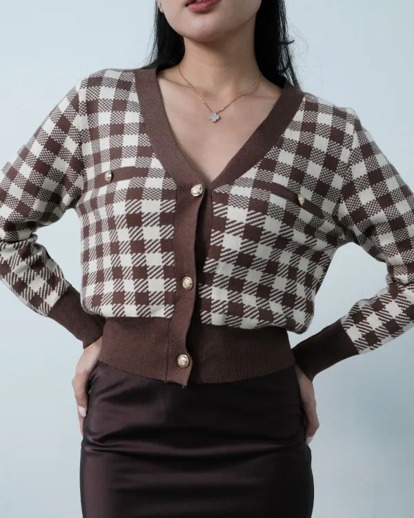 Dellane Cropped Knit Cardigan With Gold Buttons